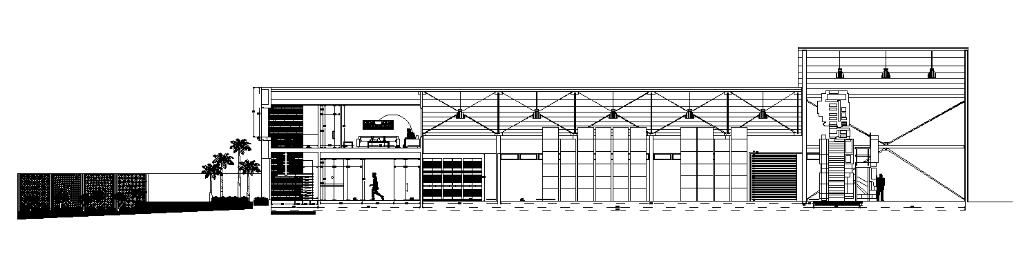 The longitudinal DD cut section view of the 51x53m training center institute building drawing is given in this plan. Car parking, reception, TV room & rest room, president's office, conference room, vip room, storage, kitchenette meeting room, study room, web hall, men's bathroom, ladies' bathroom, meeting room, photographers, information coordinator, editorial manager, photographers, 30 operating posts, room of surveillance and monitoring, layout coordinator, training room capacity for 42 people, and accounting rooms are available. For more details download the AutoCAD drawing file from our cadbull website