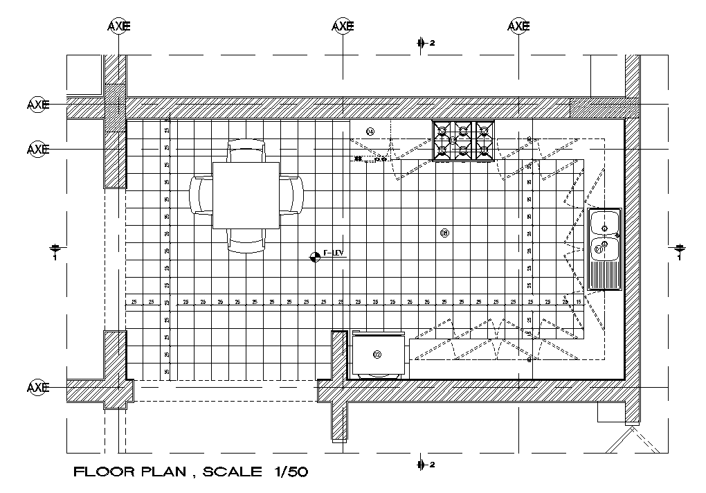 748x447cm kitchen floor plan AutoCAD drawing is given in this file. The dining table, gas stove, and sinks are available. The height of the kitchen is 3.4m. Thank you for downloading the AutoCAD drawing file and other CAD program files from our website.