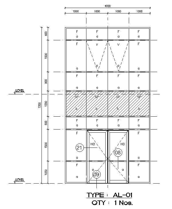 7350x4000mm two floor level door design is given in this CAD file. The height of the double door is 2550mm and width of door is 2000mm. For more details download the AutoCAD drawing file. Thank you for downloading the AutoCAD drawing file in advance and other CAD program files from our website.