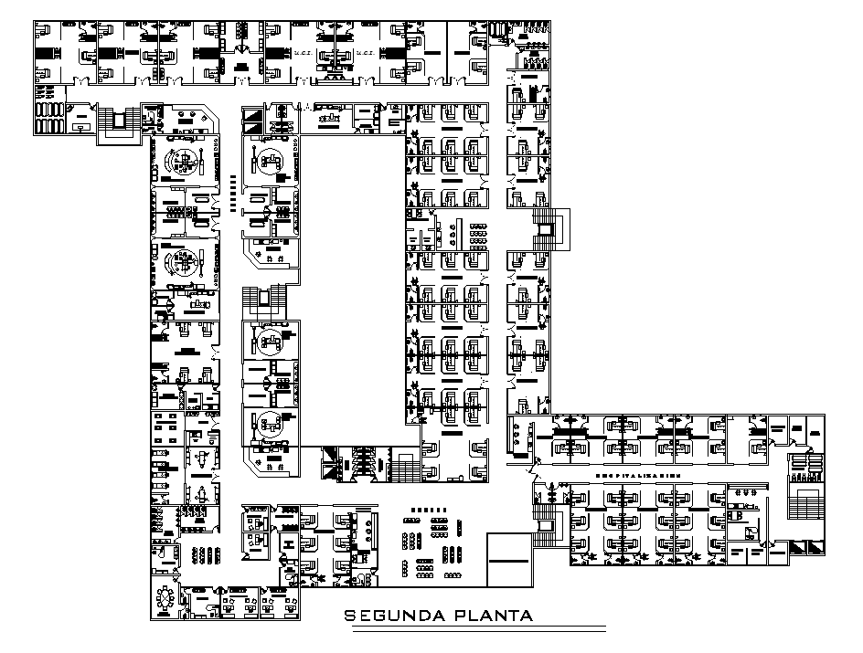 The multispecialty hospital second floor plan is given in this AutoCAD file
