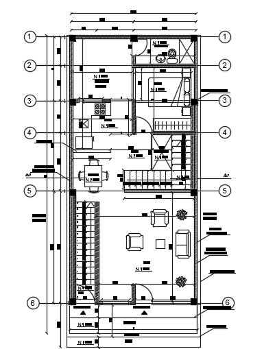 6x14m two story ground floor residential building plan AutoCAD drawing is given in this file. The living room, kitchen, dining area, master bedroom, and common bathroom are available on this ground floor. For more details download the AutoCAD drawing model from our website.