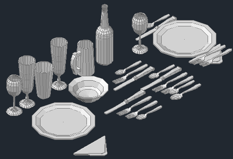 Here the 3D blocks table ware Cutlery design drawing in this auto cad file.