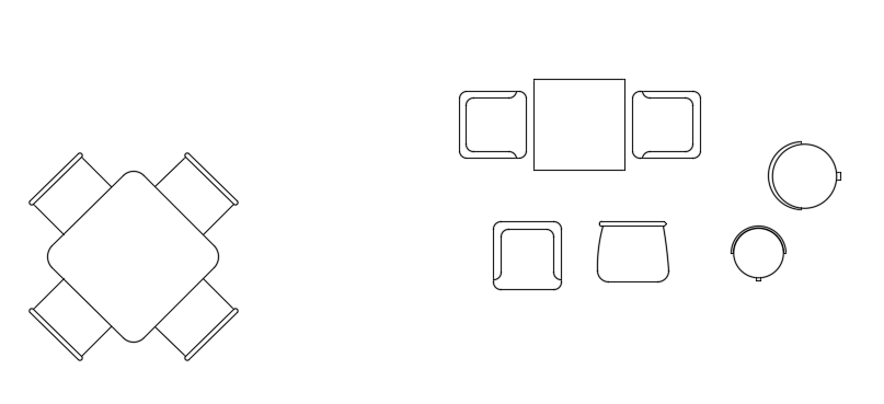 Square shape dining table and single sofa set AutoCAD plan is given in this CAD model. For more details download the AutoCAD drawing model from our website.