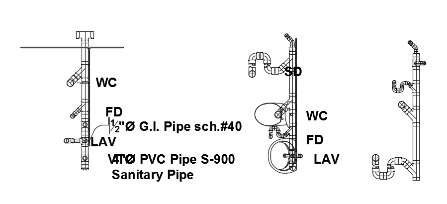 2D Autocad bathroom pipe line AutoCAD drawing is given in this file. Water closet line, lavatory line, and sanitary pipes are mentioned. For more details download the AutoCAD drawing model from our website.