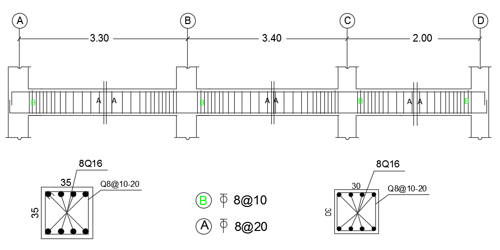 35x35cm beam cross section detail drawing is given in this file. The longitudinal section view of the beam is given. 4 numbers of 16mm diameter rods are provided at the top. 4 numbers of 16mm diameter rods are provided at the bottom. For more details download the AutoCAD drawing model from our website.