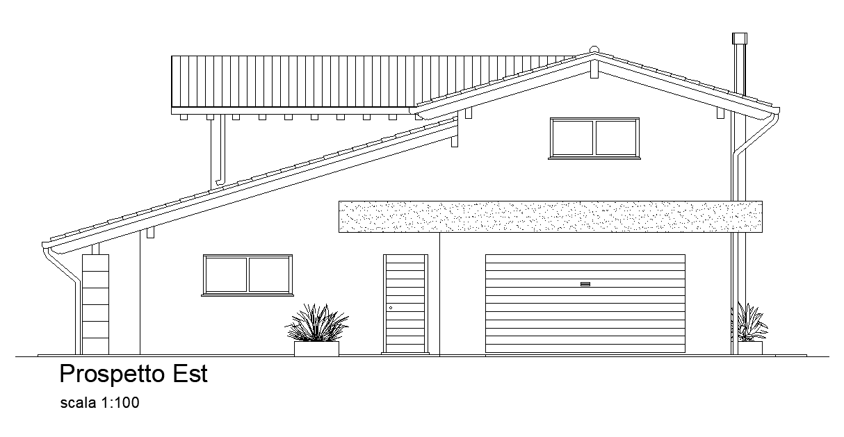 The east side elevation view of the bungalow house building is given in this CAD file. This is a two story house building. For more details download the AutoCAD drawing file. Thank you for downloading the AutoCAD drawing file and other CAD program files from our website.