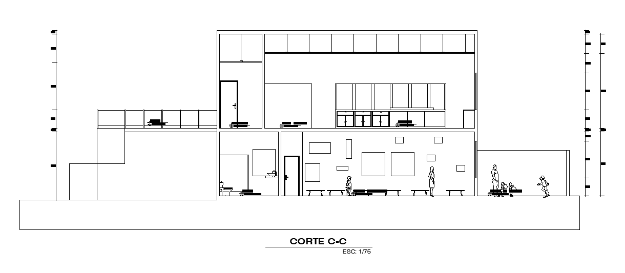 The front section view of the 31x14m club house restaurant building AutoCAD drawing is given in this file. The kitchen, dining tables, gent’s toilet, lades toilet, workers toilet, and store rooms are available. For more details download the AutoCAD drawing file. Thank you for downloading the AutoCAD drawing file and other CAD program files from our website.