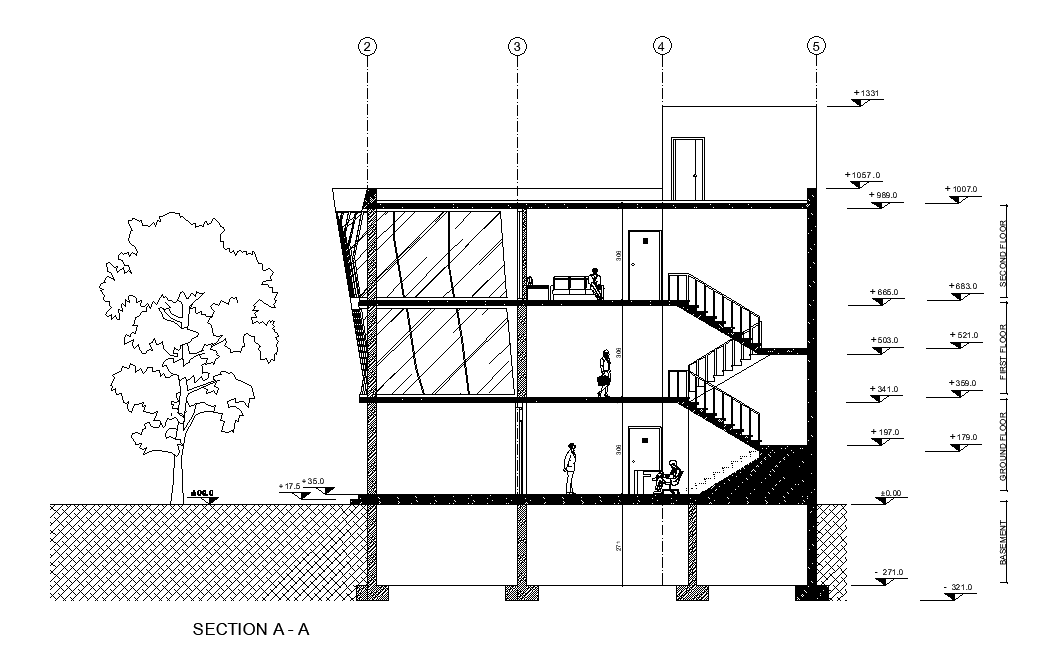The north side section view of the 25x20m museum building is given in this file. On this ground floor, tables, gent’s toilet, entrance, lobby, curator’s office, shop, reception, private toilet, private entrance, public stairs, ladies toilet, garden, and lift is available. On this first floor, temporary museum settings, lobby, administration office, conference room, private toile, private entrance hall, public entrance, gent’s toilet, ladies toilet, , and lift is available. On this second floor, public hall, private entrance hall, private toilet, gent’s toilet, ladies toilet, dressing room, secretary room, director’s office, lecture room, theatre, and public entrance is available. For more details download the AutoCAD drawing file. Thank you for downloading the AutoCAD drawing file and other CAD program files from our website.