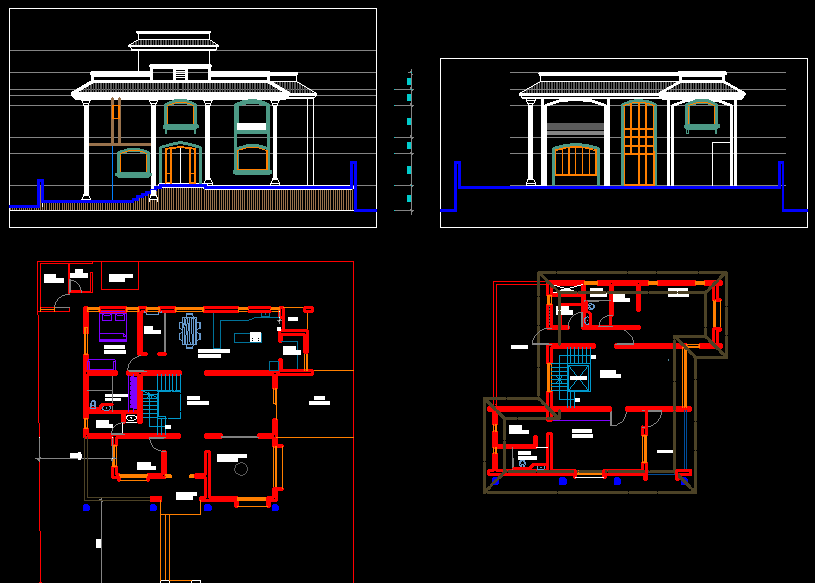 Two Floor House AutoCAD Design with Elevation and Floor Layout Plan