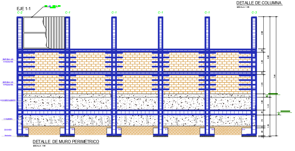 The column vertical section views are given in this CAD file. This is provided to the 9x14m office building. Detailed views are given. For more details download the AutoCAD drawing file from our website.