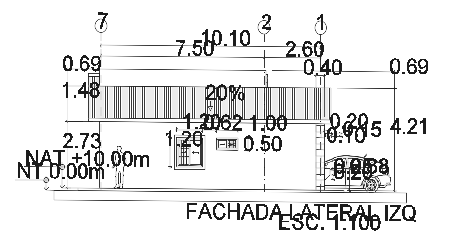 The left side elevation view of the 8x10 house building CAD drawing is given in this file. The height of the building is 4.9m. This is single story house building. This is a 3bhk house plan. The living room, car parking, kitchen, dining area, master bedroom with the attached toilet, kid’s room, guest room, and common bathrooms are available. For more details download the AutoCAD drawing is given in this file.