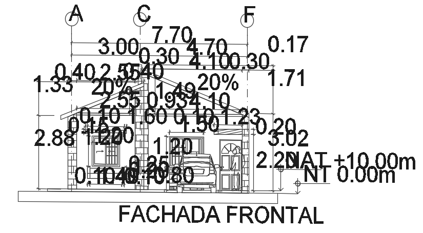 The front elevation view of the 8x10 house building CAD drawing