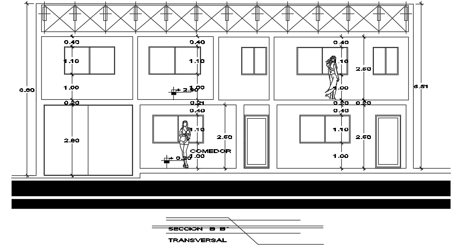 The back side section view of the 15x15m house building is given in this file. The living room, car parking, kitchen, dining area, master bedroom, and common bathrooms are available. The living room, master bedroom, two kid’s room, two guest room, and common bathrooms are available. For more details download the AutoCAD drawing is given in this file.