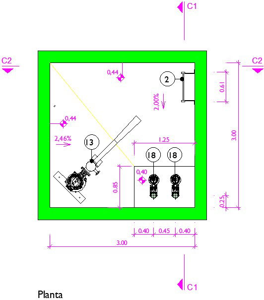 3x3m waste water treatment block is given in this model. Here, machine drawings are given. For more details download the AutoCAD drawing file from our website.