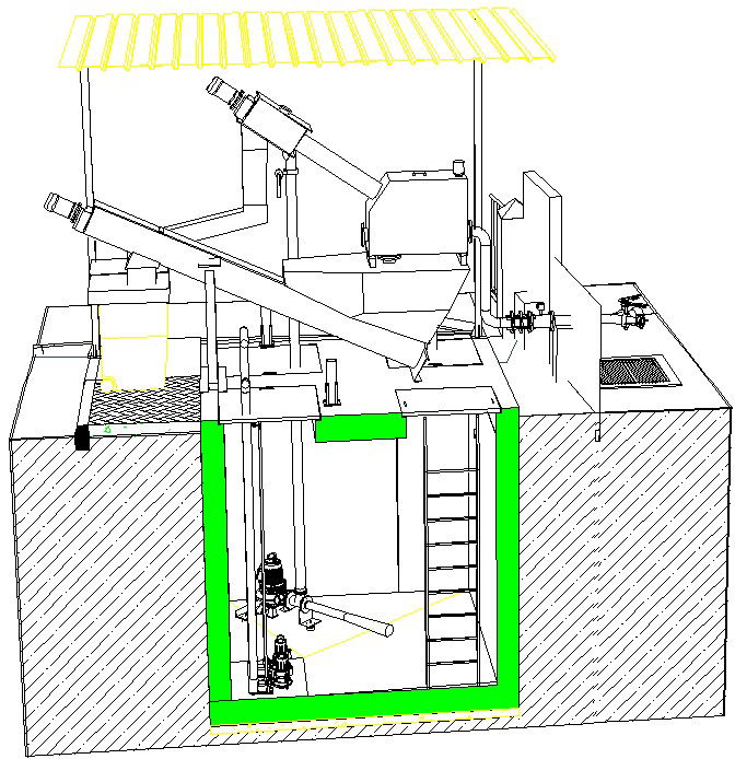 The front section view of the 3x3m waste water treatment block is given in this model. Here, machine drawings are given. For more details download the AutoCAD drawing file from our website.