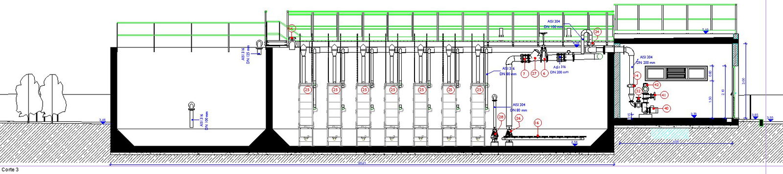 The industrial plant section with bio reactor view is given in this AutoCAD file. This is a water treatment plant. AISI 316 material is provided. This material is used as resistant to corrosive. For more details download the AutoCAD drawing file from our website.
