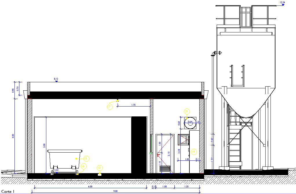 9m length of the industrial building front section view is given in this model