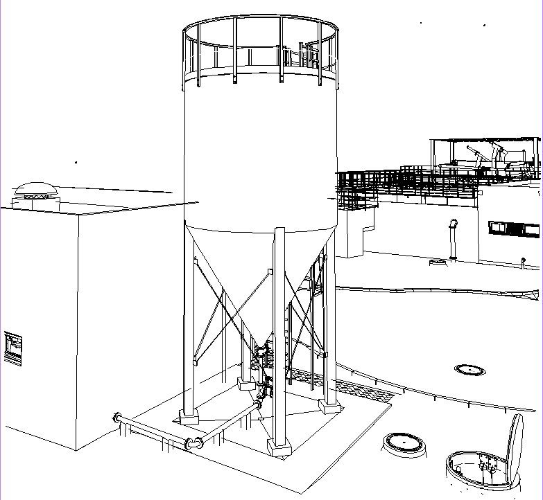 An isometric view of the waste water treatment plant drainage and dry bed drawing