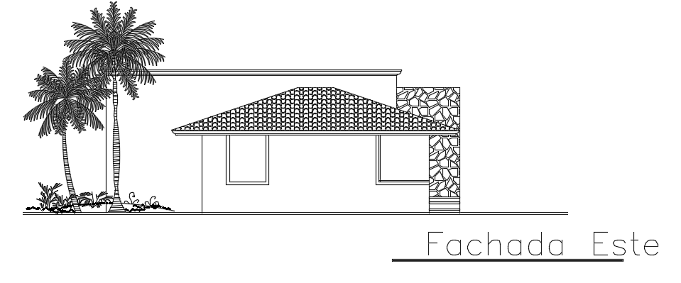 The east side elevation view of the 8x7m cottage building AutoCAD drawing is given in this file. This is a single story cottage building. The living room, kitchen, dining area, gent’s toilet, ladies toilet, master bedroom with the attached toilet, and garden is available. For more details download the AutoCAD drawing file from our cadbull website.