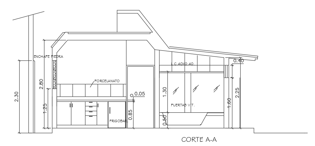 The left side section view of the 9x6m 1bedroom house building AutoCAD drawing is given in this file. This is a single story house building with a height of 3.05m. The living room, kitchen, dining area, master bedroom with the attached toilet, and common bathrooms are available. For more details download the AutoCAD drawing file from our cadbull website.