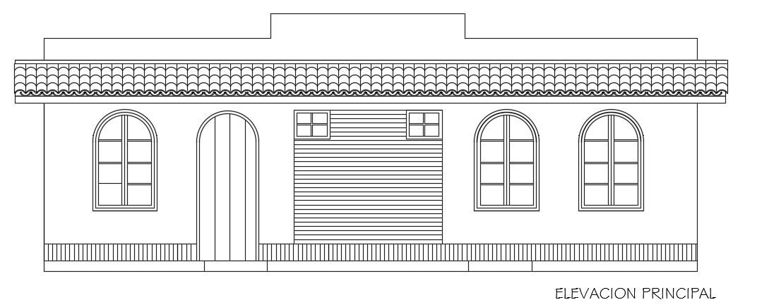 The front elevation view of the 9x6m 1bedroom house building AutoCAD drawing is given in this file. This is a single story house building with the height of 3.05m. The living room, kitchen, dining area, master bedroom with the attached toilet, and common bathrooms are available. For more details download the AutoCAD drawing file from our cadbull website.