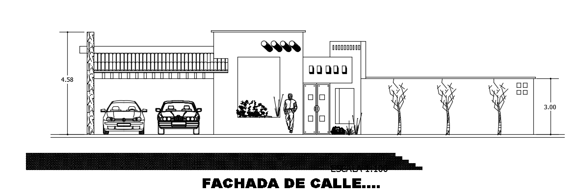 The left side elevation view of the 11x22m villa building AutoCAD 2D drawing is given in this file. This is G+ 1 villa building. On this ground floor, car parking, living room, family hall, kitchen, dining area, breakfast area, and common bathrooms are available. On this first floor, the living room, TV hall, master bedroom with the attached toilet & bath tub, guest room, kid’s room, balcony, and common bathrooms are available. For more details download the AutoCAD drawing file from our website.