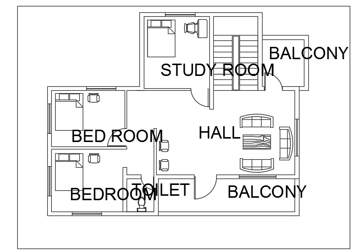 13x11m residential first floor plan CAD drawing is given in this file. The living room, study room, balconies, master bedroom, kid’s room, and common bathrooms are available. For more details download the AutoCAD drawing file from our website.