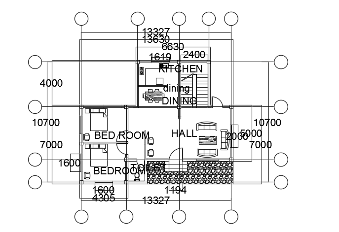 The dimension detail of the 13x11m ground floor house plan CAD drawing is given in this file. The living room, kitchen, dining area, master bedroom, kid’s room, garden, and common bathrooms are available. For more details download the AutoCAD drawing file from our website.