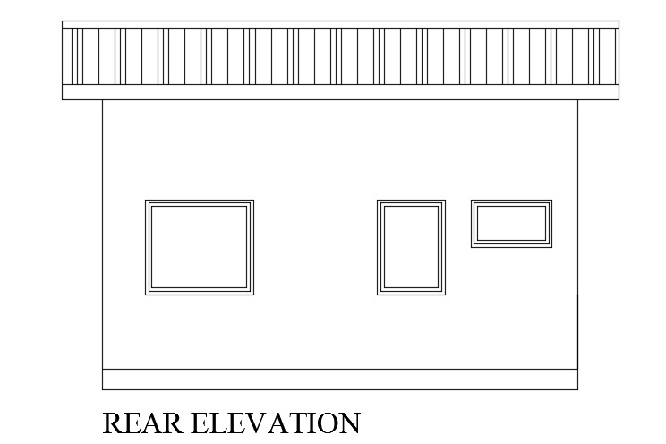 The rear elevation view of the 7x8m architecture house building AutoCAD model is given in this file. On this floor, plan, the sitting room, verandah, master bedroom, and common bathrooms are available. For more details download the AutoCAD drawing file from our website.