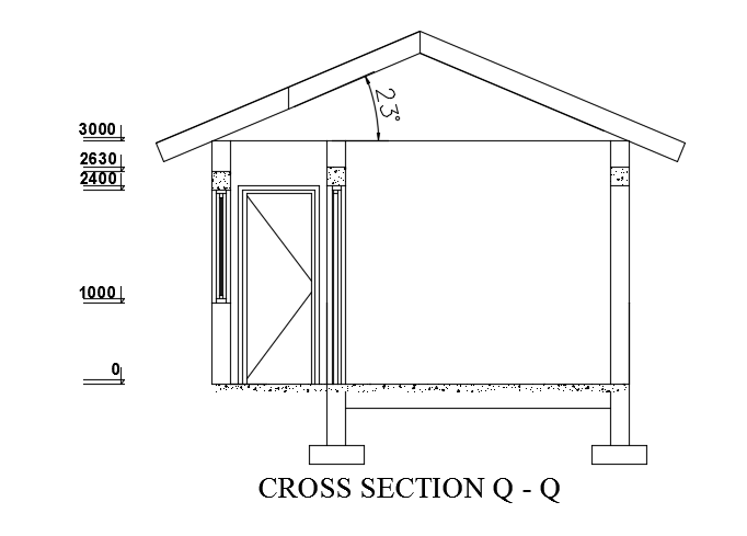The front section view of the 7x8m architecture house building AutoCAD model is given in this file. On this floor, plan, the sitting room, verandah, master bedroom, and common bathrooms are available. For more details download the AutoCAD drawing file from our website.