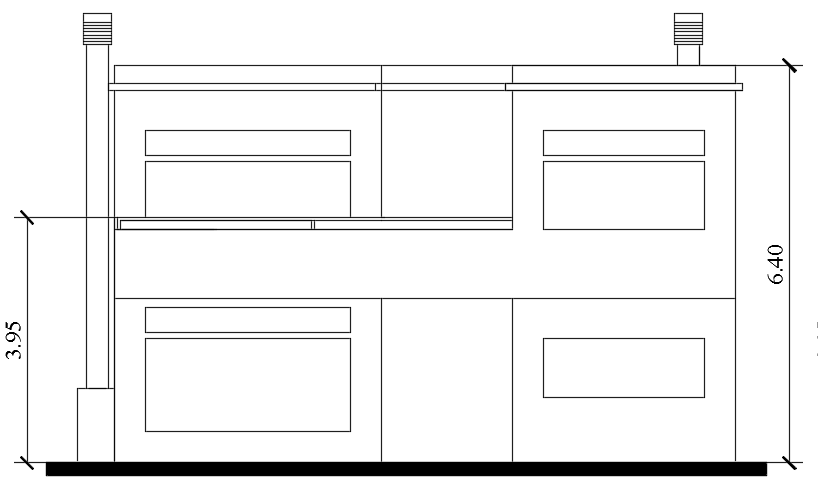 The front side elevation view of the 12x10m house building CAD drawing is given in this file. This is G+ 1 house building. The length and breadth of the house plan are 12m and 10m respectively. On this ground floor, the living room, kitchen, galleria, and cochera are available. The living room, master bedroom with the attached toilet, kid’s room, guest room, and common bathrooms are available on this first floor. For more details download the AutoCAD drawing file from our website.