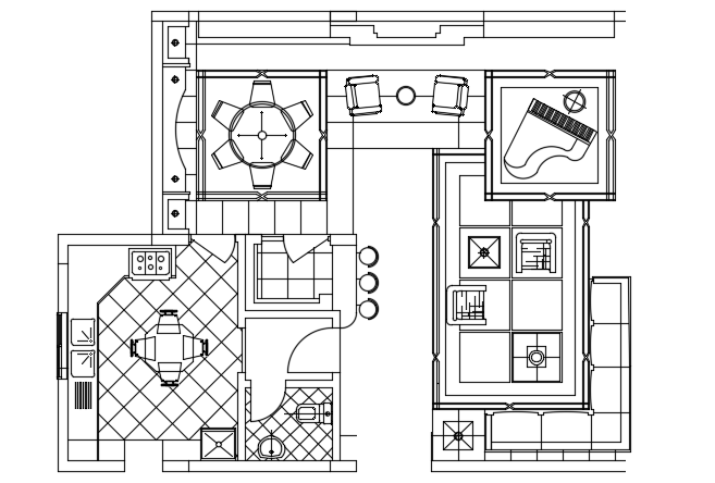 House plan furniture’s CAD block drawing is given in this file. The dining area, and kitchen sets are available. The attached bathroom is given. For more details download the AutoCAD drawing file from our cadbull website.