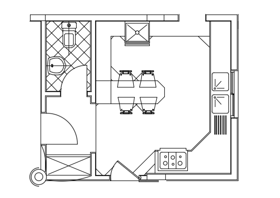 Kitchen cum attached bathroom plan is given in this CAD file. The dining table plan is given with 4 seats. For more details download the AutoCAD drawing file from our cadbull website.