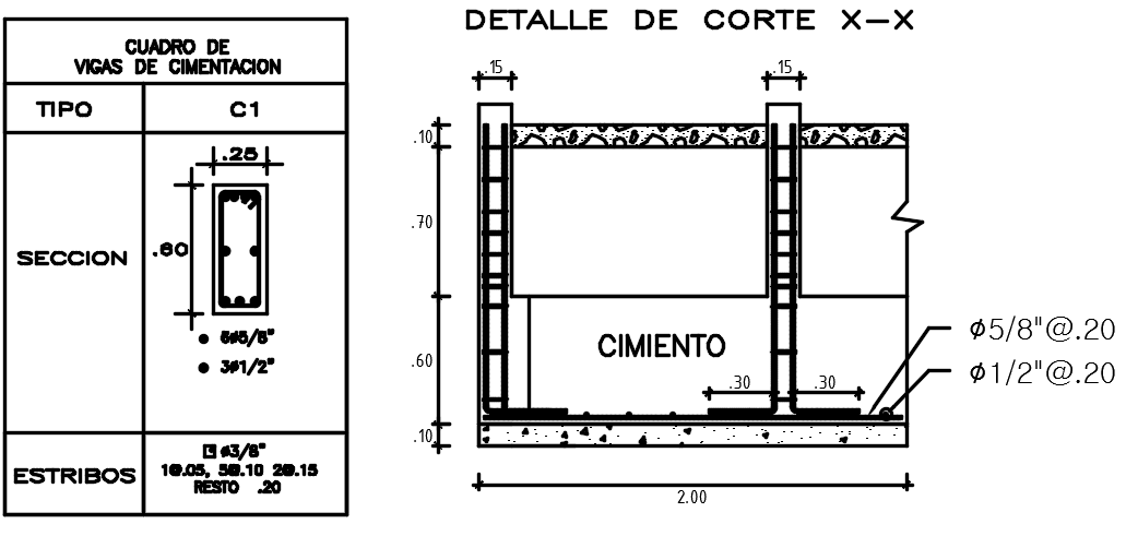 25x60cm column cross section drawing is given in this file. Reinforcement details are given. For more details download the AutoCAD drawing file from our website.