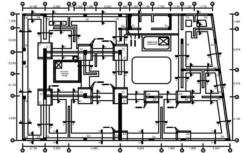 The foundation layout of the 12x19m house plan is given. The dimension of the each foundation and column is mentioned. For more details download the AutoCAD drawing file from our website.