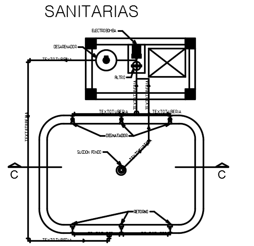 Sanitary layout of the 12x19m house building swimming pool AutoCAD drawing is given in this file. For more details download the AutoCAD drawing file from our website.