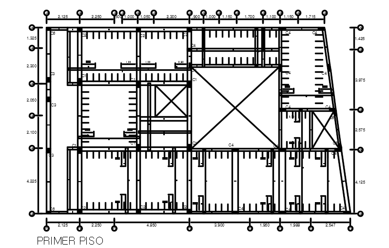 12x19m house plan ground floor beam layout AutoCAD drawing