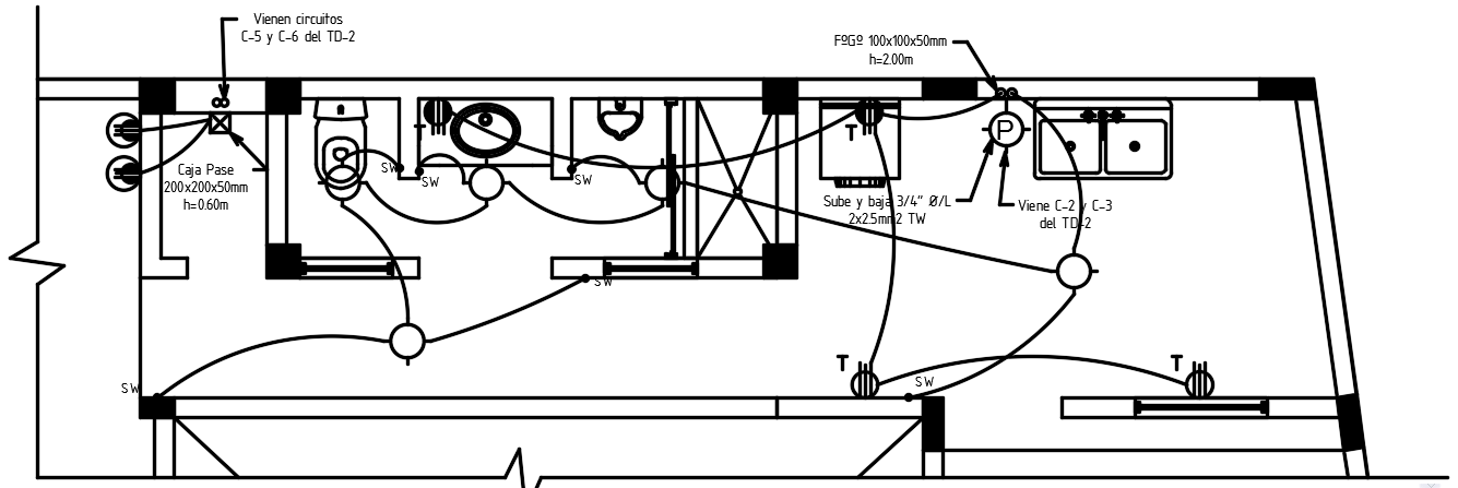 12x19m house plan kitchen and bathroom electrical layout CAD drawing is given in this file. For more details download the AutoCAD drawing file from our website.