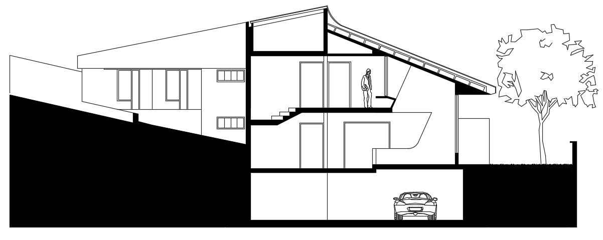 The front side cut section view of the 15x15m bungalow house building is given in this file. This is G+ 2 house building. On this ground floor, the garage, and gardens are available. On this first floor, the living room, kitchen, dining area, master bedroom with the attached toilet, common bathroom, and store rooms are available. On this second floor, master bedroom with the attached toilet& bath tub, guest room, kid’s room, and common bathrooms are available. For more details download the AutoCAD drawing file from our cadbull website.