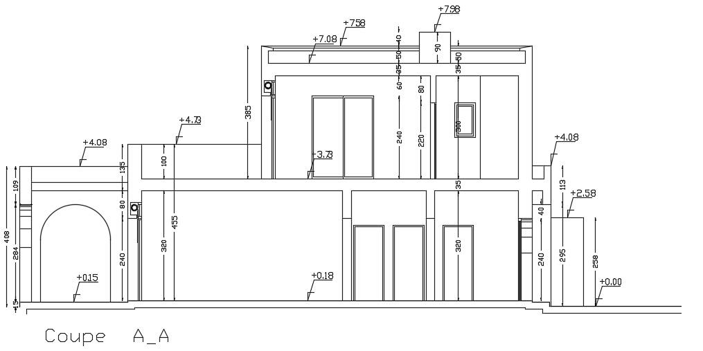 The left side section view of the 16x15m bungalow house building is given in this file. This is G+ 1 house building. On this ground floor, salon, living room, cuisine, dining area, master bedroom with the attached toilet, kid’s room with the attached toilet, and common bathrooms are available. On this first floor, the master bedroom with the attached toilet, and terrace are available. For more details download the AutoCAD drawing file from our cadbull website.