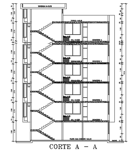 The front cut section view of the 12x12m architecture apartment building is given in this file. This is G+ 6 apartment building. The living room, kitchen, family hall, master bedroom with the attached toilet, kid’s room with the attached toilet, two kid’s room, and common bathrooms are available. For more details download the AutoCAD drawing file from our cadbull website.