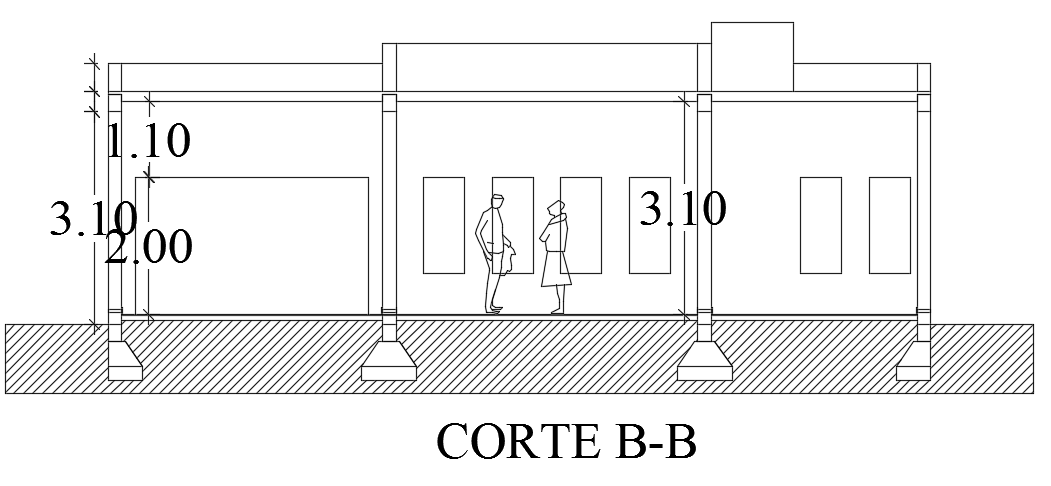 The front section view of the 12x30m house building AutoCAD model is given. This is single story house building. In this, boundary layout, roof layout, and floor plans are given. On this floor, the living room, kitchen, master bedroom with the attached toilet, kid’s room, dining area, and common bathrooms are available. For more details download the AutoCAD drawing file from our cadbull website.