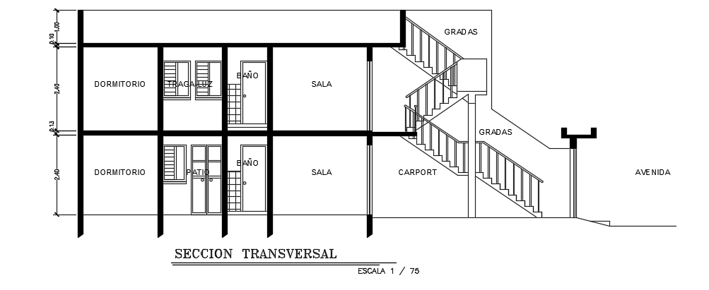The longitudinal section view of the 15x10m house building is given. This is two story house building. The living room, dining area, kitchen, master bedroom, common bathroom, and car parking available on this ground floor. The living room, dining area, kitchen, master bedroom, and common bathroom is available on this first floor. For more details download the AutoCAD drawing file from our cadbull website.