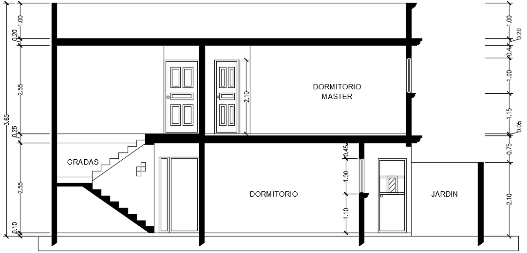 The left side section view of the 15x10m house building is given. This is two story house building. The living room, dining area, kitchen, master bedroom, common bathroom, and car parking available on this ground floor. The living room, dining area, kitchen, master bedroom, and common bathroom is available on this first floor. For more details download the AutoCAD drawing file from our cadbull website.