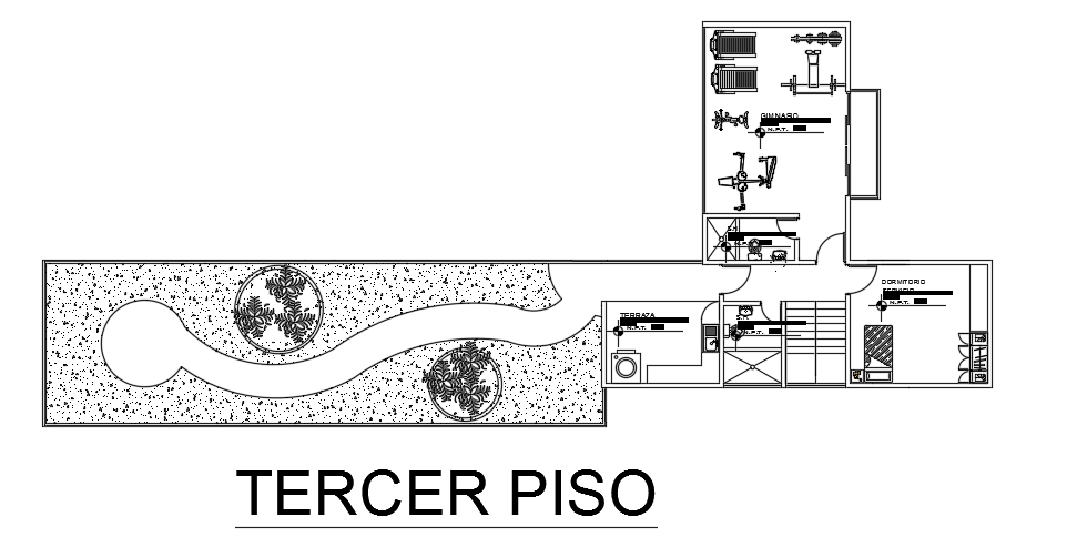 37x20m villa third floor plan AutoCAD drawing is given in this file. The master bedroom, common toilet, gym with the attached toilet, and terrace is available. For more details download the AutoCAD file from our cadbull website.