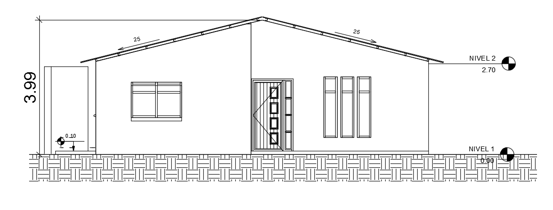 The front elevation view of the 15x10m villa building AutoCAD model is given in this file. The height of the building is 4.03m. The living room, kitchen, dining area, master bedroom, kid’s room, guest room, and service room with the attached toilet are available. For more details download the AutoCAD file from our cadbull website.
