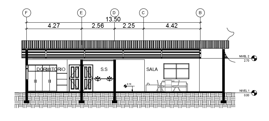 The back side section view of the 15x10m villa building AutoCAD model is given in this file. The height of the building is 4.03m. The living room, kitchen, dining area, master bedroom, kid’s room, guest room, and service room with the attached toilet are available. For more details download the AutoCAD file from our cadbull website.
