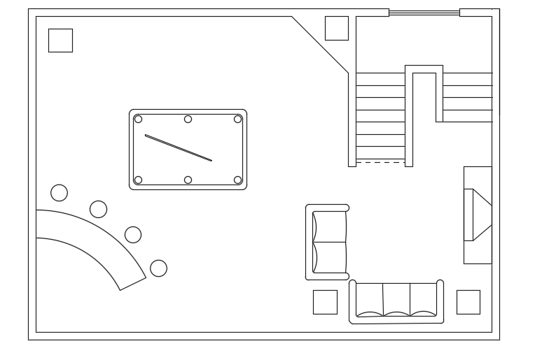 24x16m house plan living room layout is given in this file. Corner sofa is provided near the staircase. For more details download the AutoCAD file from our cadbull website.