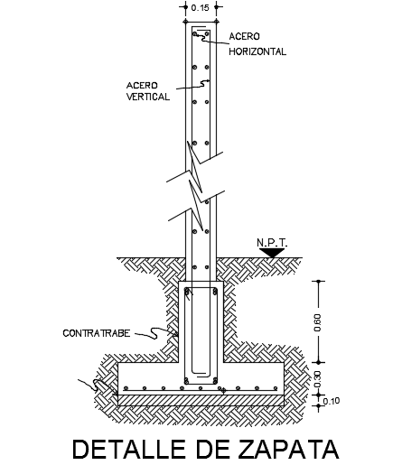 14x17m house building foundation section drawing is given in this file. The length of the column is 15cm. Reinforcement details are given. For more details download the AutoCAD file from our cadbull website.