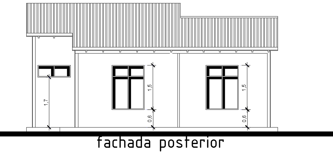 The back side elevation view of the 8X10m villa building AutoCAD drawing is given in this file. This is single story residential building. The living room, kitchen, dining area, master bedroom with the attached toilet, kid’s room, guest room, and common bathroom is available. For more details download the AutoCAD file from our cadbull website.